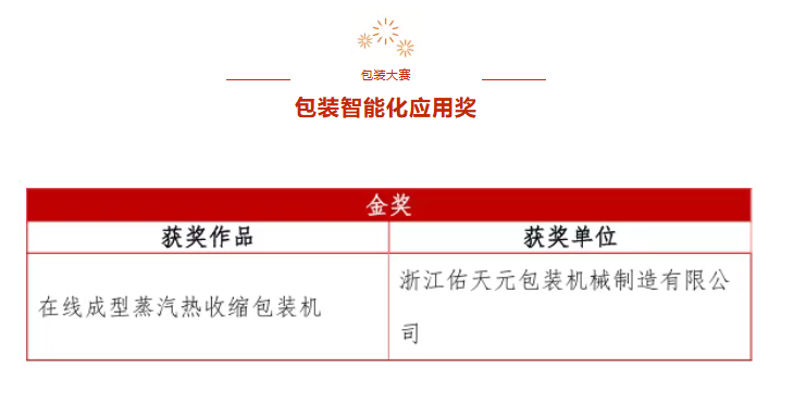 在本届大赛中,浙江BB贝博艾弗森官方网站包装机械制造有限公司申报的作品——《在线成型蒸汽热收缩包装机》,凭借在智能化应用方面的创新与突破,荣获“包装智能化应用金奖”。该荣誉充分彰显了BB贝博艾弗森官方网站在智能包装装备研发与应用上的领先实力,同时也体现了行业与专家对企业持续创新能力的高度认可。
